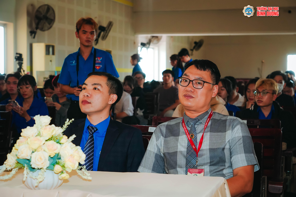 Tham dự buổi lễ, có ThS. Nguyễn Ngọc Chiến – Phó Bí thư Đảng ủy, Chủ tịch Công đoàn Trường Đại học Bình Dương, Đ/c Nguyễn Thành Tài – Bí thư Đoàn Trường, Đ/c Nguyễn Tùng Lâm – Phó Bí thư Đoàn Trường, cùng các Thường trực Đoàn – Hội và hơn 100 đoàn viên, thanh niên từ các đơn vị chi đoàn.