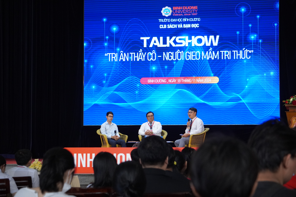 Thiết thực chào mừng 42 năm Ngày Nhà giáo Việt Nam (20/11/1982-20/11/2024). Chiều ngày, 18/11/2024, CLB Sách và Bạn đọc Trường Đại học Bình Dương đã tổ chức chương trình Talkshow: “TRI ÂN THẦY CÔ – NGƯỜI GIEO MẦM TRI THỨC”